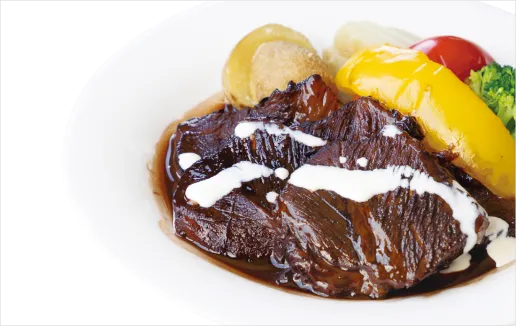 上質でやわらかな牛ほほ肉を赤ワインで煮込みました。旨みを凝縮した濃厚な味わいが楽しめる逸品です。