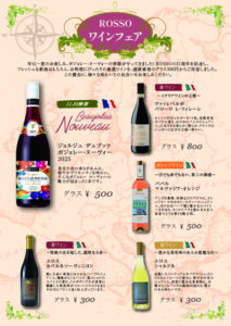 ROSSOの21周年を記念し、フレッシュな新酒はもちろん、お料理にぴったりの厳選ワインを、感謝価格のグラス300円からご用意しました。