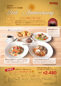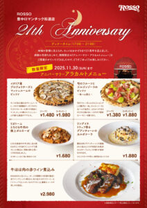【11月1日スタート】ROSSO21周年アニバーサリー特別メニューのご案内